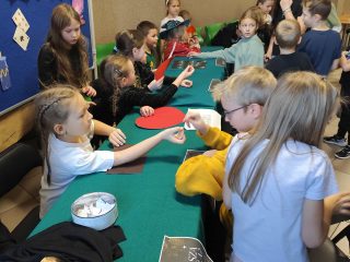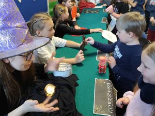 28 listopada 2025r. uczniowie klas 1-3 mieli okazję przenieść się do prawdziwego świata magii! Samorząd Uczniowski najmłodszych klas zorganizował wyjątkowe, dynamiczne andrzejki, które odbyły się na trzech długich przerwach. Zamiast lania wosku, postawiono na bardziej „profesjonalne” i fascynujące metody przepowiadania przyszłości
