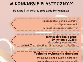 Z okazji Dnia Książki i Praw Autorskich Biblioteka Pedagogiczna im. H. Radlińskiej w Siedlcach, filia w Mińsku Mazowieckim zaprasza uczniów do udziału w konkursie plastycznym By czytać