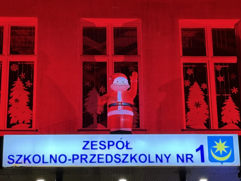 W piątek, gdy zapadł zmrok, nasza szkoła zamieniła się w prawdziwie magiczne miejsce. Jej mury rozświetliła intensywna czerwień – kolor serca, radości i nadchodzących świąt, a na dachu stanął Święty Mikołaj. Od tej chwili będzie on czuwał nad szkołą, przypominając każdego dnia, że grudzień to czas dobra, życzliwości, uśmiechu i bliskości.
