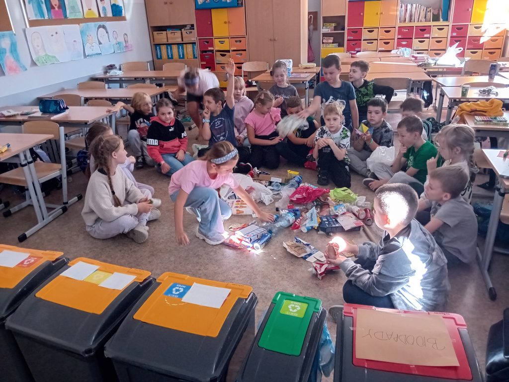 26 września uczniowie z klasy 2b uczyli się jak prawidłowo segregować śmieci. Odpowiadali sobie na ważne pytania: po co sortujemy odpady, czy możemy dać im drugie życie i jakie możemy podjąć działania ekologiczne, aby świat, który nas otacza był lepszym i piękniejszym miejscem.