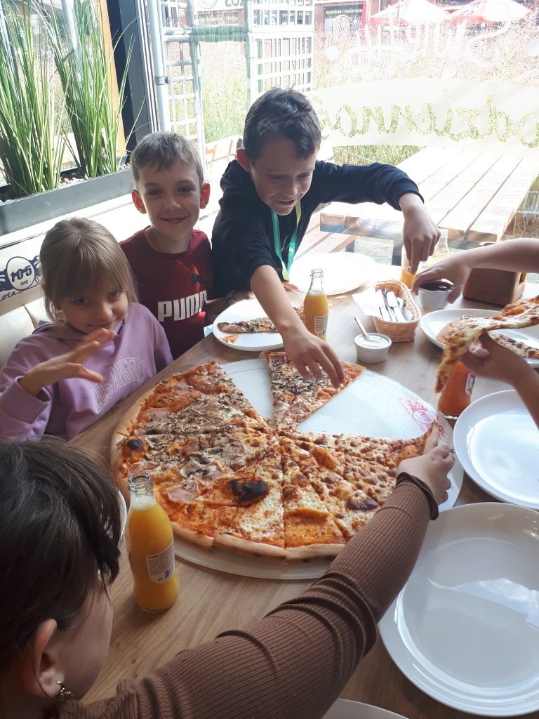 Z okazji Dnia Chłopaka uczniowie klasy 3 b wybrali się do pizzerii, by wspólnie świętować ten wyjątkowy dzień w atmosferze radości i śmiechu. Już od wejścia wszystkich przywitał aromat świeżo wypiekanego ciasta, sera i ziół. Każdy mógł wybrać swoją ulubioną pizzę – od klasycznej Margherity po bardziej wyszukane kompozycje smakowe. Do tego soki w ulubionych smakach.