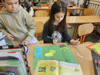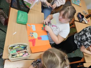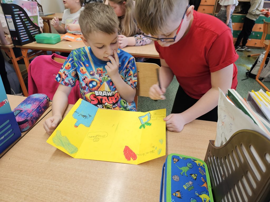 Praca w grupach okazała się dla dzieci bardzo atrakcyjna, a forma tworzenia lapbooków była dla nich czymś nowym i angażującym – innym niż tradycyjne podręczniki. Dzieci wykazały się ogromnym zaangażowaniem i z entuzjazmem dzieliły się swoimi pomysłami. Zajęcia nie tylko rozbudziły w uczniach poczucie odpowiedzialności za naszą planetę, ale też pokazały, że nauka może być ciekawa i twórcza.