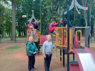 W drodze powrotnej z wystawy „Poznaj grzyby z Mińskim Sanepidem” klasy 2a i 2b razem z p. Teresą Romaszuk i p. Małgorzatą Bogusz odwiedziły miejski Park Dernałowiczów. Chwili wytchnienia sprzyjała piękna pogoda. Po udanym spacerze i zjedzeniu drugiego śniadania przyszedł czas na zabawy integracyjne na placu zabaw.