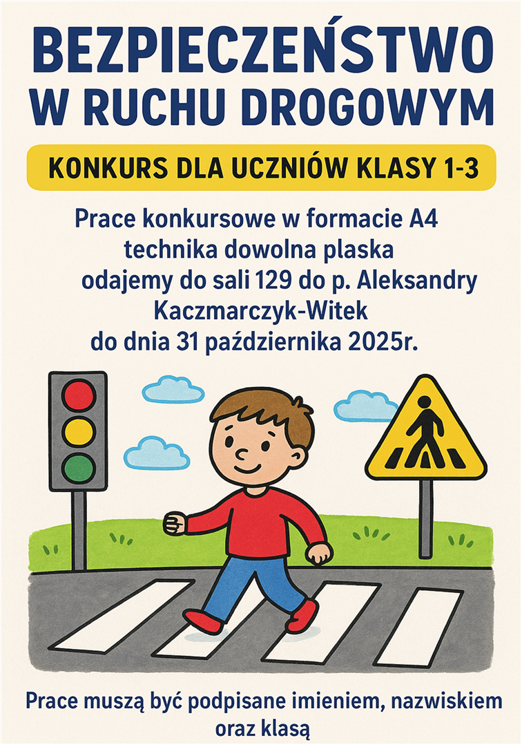 Zapraszamy wszystkich uczniów klas 1-3 do udziału w konkursie plastycznym dotyczącym bezpieczeństwa w ruchu drogowym.