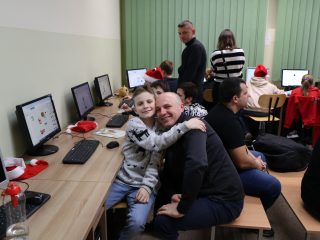 Uczniowie z zaangażowaniem projektowali wirtualne modele choinek i bałwanków, rozwijając wyobraźnię przestrzenną oraz umiejętności pracy z technologią 3D. Rodzice mieli możliwość obserwować proces twórczy i podziwiać gotowe projekty wyświetlane na ekranie.
