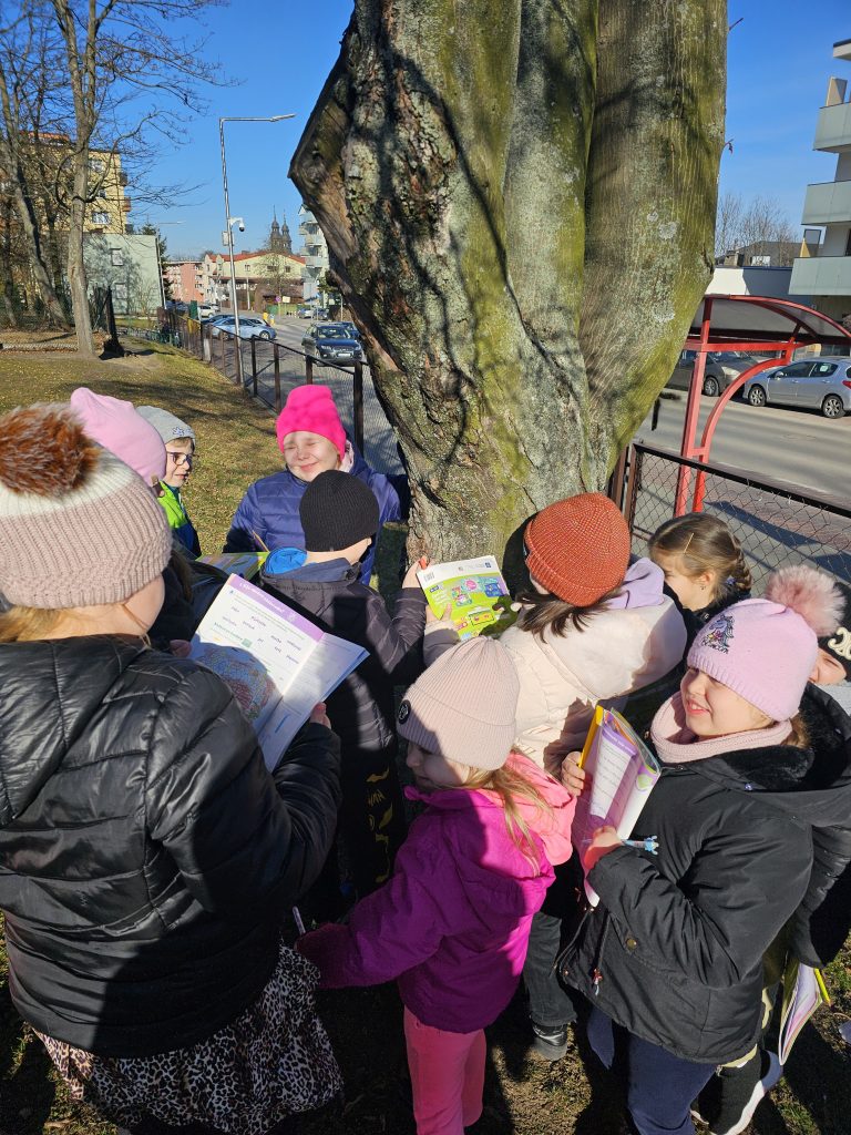 W dniu 6 marca 2025 roku uczniowie klasy 2c uczestniczyli w lekcji przyrody, która odbyła się na terenie szkoły. Tematem zajęć były liściaste drzewa rosnące w najbliższym otoczeniu. Zadaniem dzieci było dokładne przyjrzenie się tym drzewom, opisanie ich kory oraz zauważenie zmian, które zachodzą w naturze mimo kalendarzowej zimy.