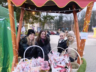 W ramach wydarzenia odbył się również kiermasz rękodzieła. Opiekunki Samorządu Uczniowskiego klas 4–8, Milena Jałocha i Dobrawa Kubaszek, a także nauczycielki klas trzecich, pani Marta Galik i pani Aneta Zadunajska, wspólnie z panią dyrektor Marzeną Popławską oraz wicedyrektor Malwiną Sobkowicz rozdawały pierniczki. Słodkości te zostały własnoręcznie przygotowane przez naszych uczniów przy wsparciu rodziców, co dodatkowo podkreśliło wspólnotowy charakter wydarzenia.