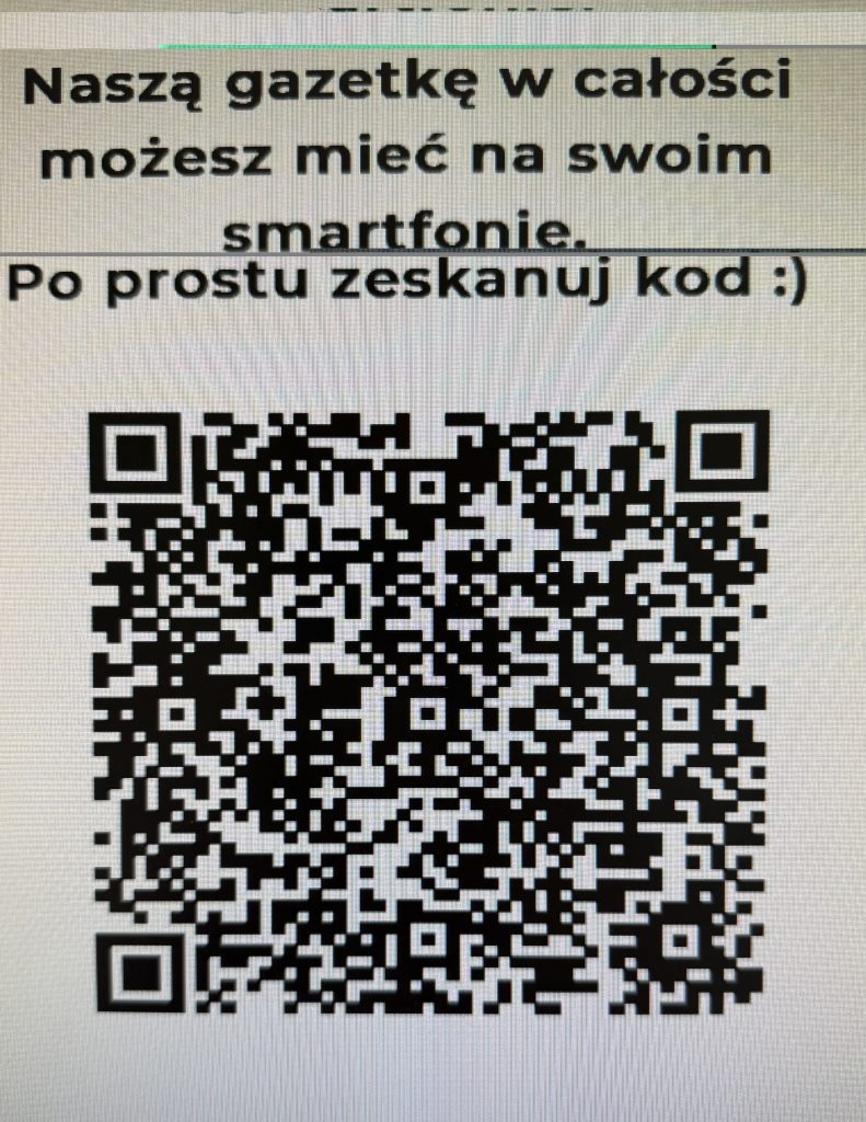 Gazetkę możecie przeczytać w wersji papierowej w gablocie na drugim piętrze lub na swoim smartfonie, skanując kod QR.