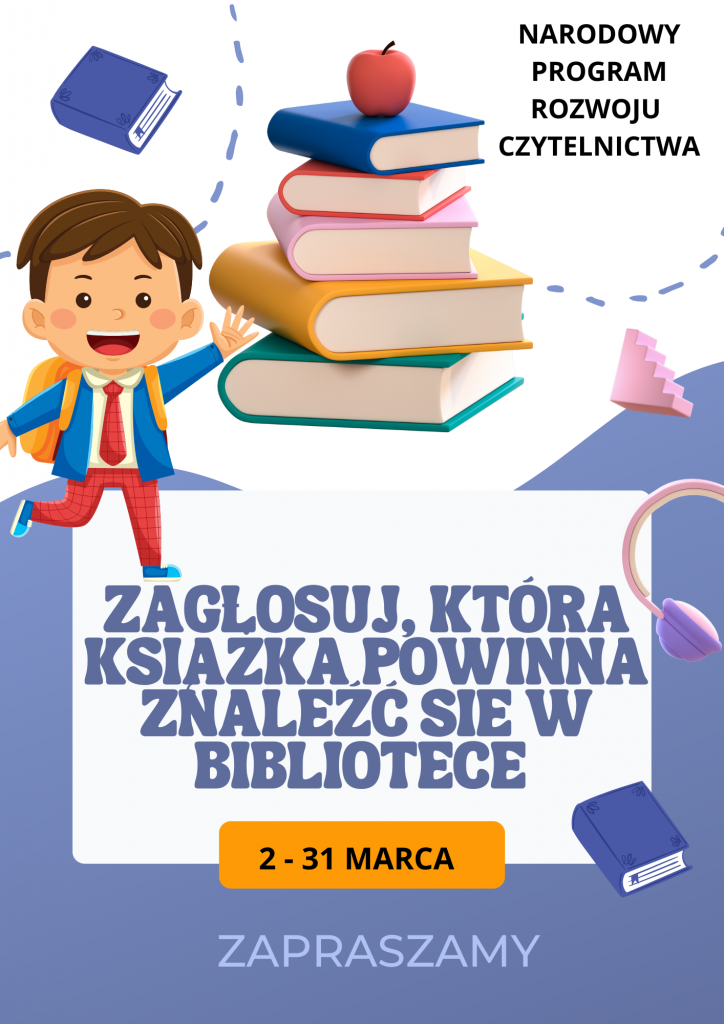 Planujemy uzupełnić księgozbiór o nowości i inne warte przeczytania książki. Prosimy uczniów o podanie tytułów książek, serii wydawniczych, które polecają, które warto przeczytać. Propozycje należy zgłaszać bezpośrednio w bibliotece szkolnej w dniach 3 – 31 marca.