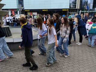 Uroczystość rozpoczęła się od wspólnego odśpiewania hymnu Unii Europejskiej – „Ody do radości”, co stworzyło podniosłą i jednocześnie integrującą atmosferę. Kolejnym punktem programu był pełen energii taniec belgijski, w którym uczniowie zatańczyli razem z uczestnikami wydarzenia, zachęcając do zabawy także przechodniów.