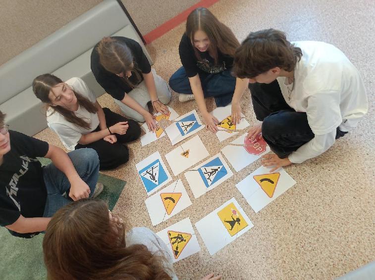 W ramach ogólnopolskiego konkursu „Odblaskowa Szkoła” uczniowie ze Szkolnego Klubu Wolontariatu dnia 6.11. 25r. zorganizowali, podczas przerwy, wyjątkową akcję promującą bezpieczeństwo w ruchu drogowym. Były gry planszowe, puzzle i zagadki dotyczące ruchu drogowego, za które można było zdobywać uśmiechnięte buźki . Akcja nie tylko dostarczyła uczniom wiele radości, ale przede wszystkim przypomniała, jak ważne jest noszenie elementów odblaskowych i przestrzeganie zasad ruchu drogowego.