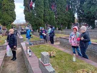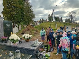 31 października uczniowie klasy 2b udali się na cmentarz w Mińsku Mazowieckim. Na miejscu zapalili znicze na grobie dyrektora Sławomira Domańskiego oraz na mogiłach żołnierzy poległych w czasie II wojny światowej. Wizyta na cmentarzu była wyrazem pamięci o zmarłych, troski o zaniedbane groby oraz okazją do refleksji nad znaczeniem szacunku i godnego zachowania w miejscu wiecznego spoczynku.