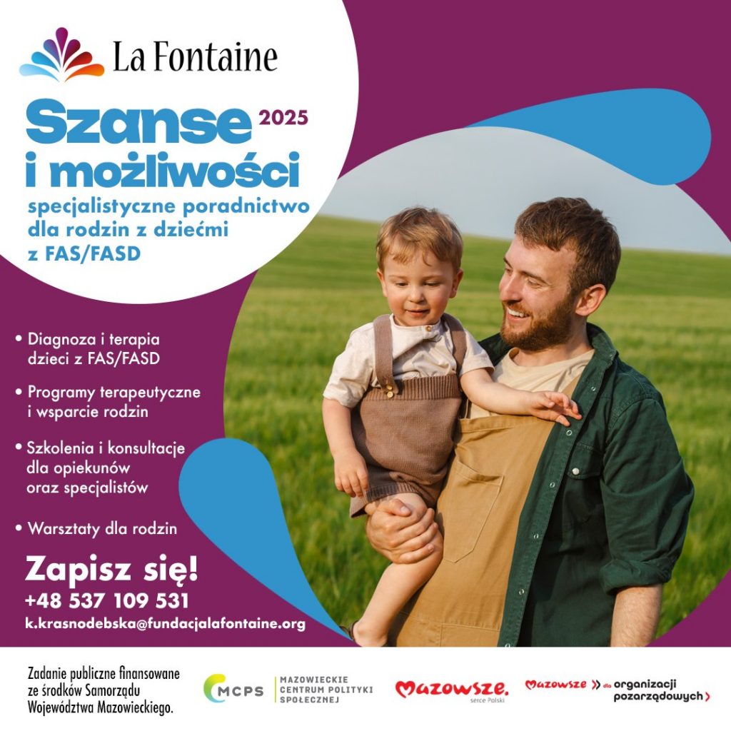 W ramach projektu oferujemy bezpłatne wsparcie dla rodzin, w których są dzieci z podejrzeniem lub diagnozą FAS/FASD, a także dla opiekunów, którzy zmagają się z podobnymi wyzwaniami wychowawczymi.