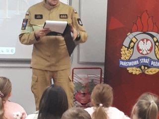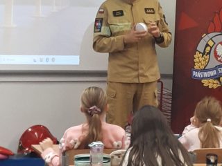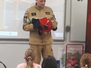 25 listopada 2025 r. uczniowie klasy 3b uczestniczyli w spotkaniu ze strażakiem – p. Piotrem Jałochą, pracownikiem Państwowej Straży Pożarnej w Mińsku Mazowieckim , który w ciekawy sposób opowiedział o zasadach bezpieczeństwa.