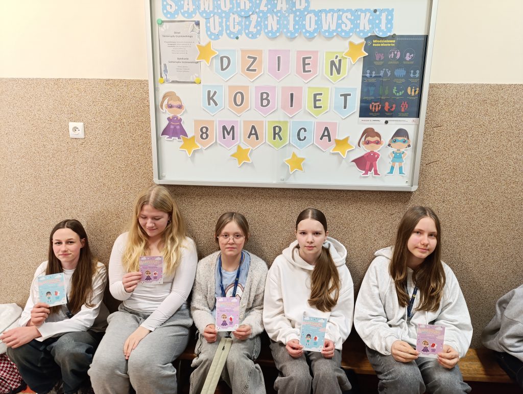 💐8 marca w naszej szkole obchodziliśmy Dzień Kobiet. Z tej okazji Samorząd Uczniowski klas 4-8 przygotował plebiscyt na SUPER DZIEWCZYNĘ. Nagrodą była specjalna legitymacja, którą należało przy odbiorze „podpisać” własnym odciskiem palca.