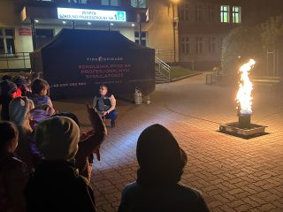 Wieczór rozpoczął się od niezwykłej wyprawy po zaciemnionych korytarzach szkoły. Wyposażeni w latarki uczniowie odkrywali jej zakamarki, czując się jak prawdziwi odkrywcy. Następnie, dzięki uprzejmości pana Mateusza Zawadzkiego, strażaka i instruktora szkoleń pożarniczych, dzieci mogły uczestniczyć w profesjonalnym pokazie, w którym zobaczyły symulacje pożaru, spróbowały swoich sił w gaszeniu ognia oraz miały okazję przejść przez specjalny namiot dymny.