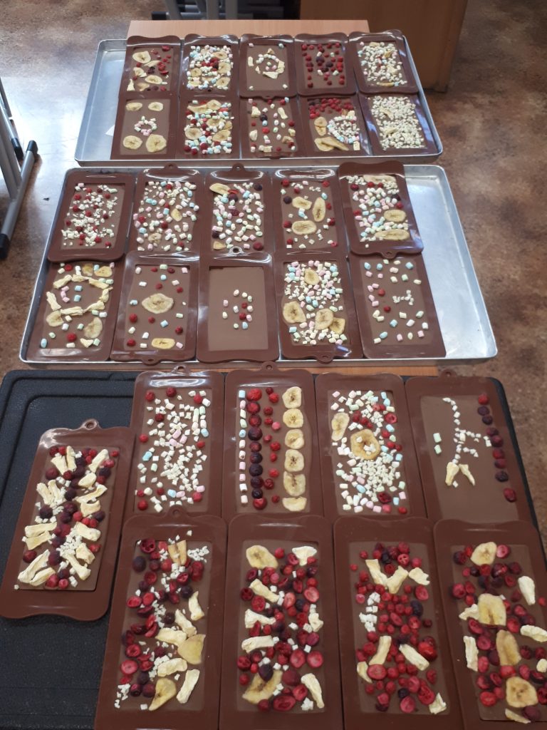 4 marca 2025 r. klasy 2 b brała udział w warsztatach dekorowania czekolady prowadzonych przez Akademię Czekolady dla Dzieci. W pierwszej części warsztatów dzieci miały okazję poznać etapy produkcji czekolady, obejrzeć owoce i nasiona kakaowca, poznać miejsca gdzie rośnie kakaowiec. Następnie uczniowie dokonali degustacji czekolady- zjedli własnoręcznie zrobione i ozdobione czekoladowe lizaki. Po takim “małym poczęstunku” mogły już zabrać się do twórczej pracy. Otrzymały formy, które wypełnione były płynną czekoladą. Każdy uczeń stworzył własnoręcznie swoją wymarzoną tabliczkę czekolady, którą ozdobił zdrowymi, pysznymi owocami liofilizowanym. Uczniowie pracowali z wielkim zaangażowaniem. Gdy czekolada zastygła, samodzielnie zapakowali tabliczki do ozdobnej torebki i zabrali do domu. To był miło i twórczo spędzony czas.