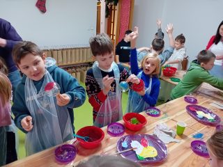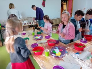 24 listopada 2025r. uczniowie z klas 2a i 2b udali się do KPZ Bombki Ozdoby Choinkowe w Sulejówku na warsztaty malowania bombek choinkowych. Podczas własnoręcznego dekorowania ozdób wysłuchali historii powstania tych świątecznych dekoracji. Pokaz tradycyjnego dmuchania szkła umiliły ciekawe opowieści o związane z produkcją szklanych ozdób choinkowych.