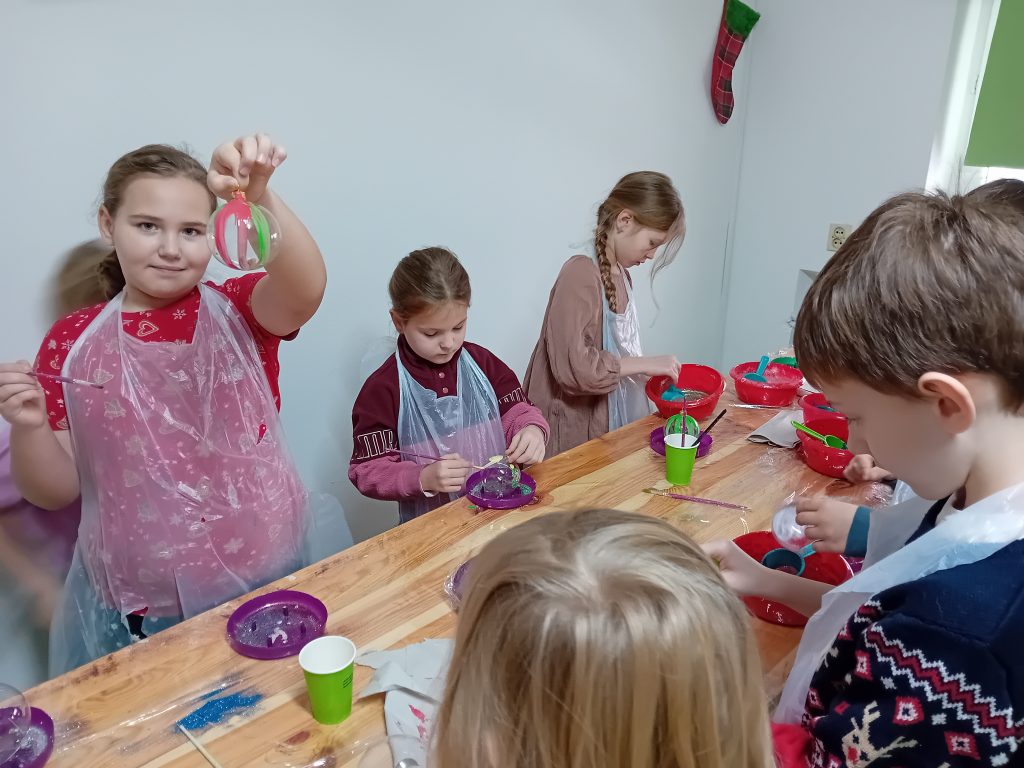 24 listopada 2025r. uczniowie z klas 2a i 2b udali się do KPZ Bombki Ozdoby Choinkowe w Sulejówku na warsztaty malowania bombek choinkowych. Podczas własnoręcznego dekorowania ozdób wysłuchali historii powstania tych świątecznych dekoracji. Pokaz tradycyjnego dmuchania szkła umiliły ciekawe opowieści o związane z produkcją szklanych ozdób choinkowych.