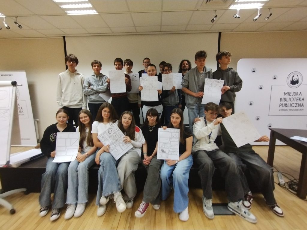 12 maja uczniowie klasy 7b wzięli udział w warsztatach rysowania komiksów, które odbyły się w Miejskiej Bibliotece Publicznej. Wydarzenie zostało zorganizowane w ramach obchodów XXII Ogólnopolskiego Tygodnia Bibliotek. Podczas zajęć młodzież poznała podstawy tworzenia komiksu – od pomysłu, przez scenariusz, aż po ilustrację. Uczniowie dowiedzieli się, jak budować narrację obrazkową i w ciekawy sposób łączyć tekst z rysunkiem. Efektem warsztatów były autorskie krótkie komiksy stworzone przez uczestników, którzy z dużym zaangażowaniem przelali swoje pomysły na papier. Warsztaty poprowadził Pan Adam Polkowski, który z pasją i profesjonalizmem dzielił się swoją wiedzą oraz inspirował młodzież do twórczego działania. Dziękujemy za inspirujące spotkanie i twórczą atmosferę!