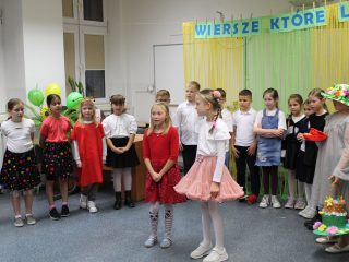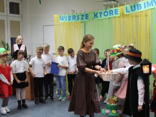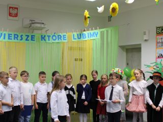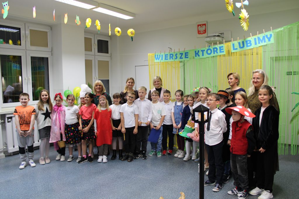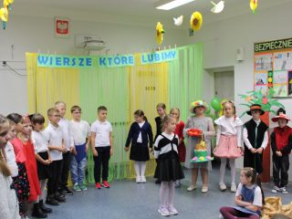 W dniu 5 listopada 2025r. w naszej szkole miało miejsce przedstawienie teatralne pt. Wiersze, które lubimy. Spektakl został przygotowany przez nauczycieli i zaprezentowany przez uczniów klas drugich i trzecich uczęszczających na świetlicę szkolną. Odbiorcami przedstawienia byli zaproszeni goście –  rodzice i dyrekcja. Scenografia, muzyka i wspaniała gra aktorska bardzo podobała się widzom, którzy nagrodzili aktorów gromkimi brawami. Przedstawienie oprócz wesołych zwrotów akcji niosło również przesłanie że wiersze po to są, aby dzieci z ochotą mogły odkrywać je. Na zakończenie każdy uczestnik spotkania mógł skosztować słodkości z koszyczka.