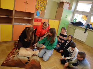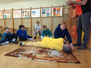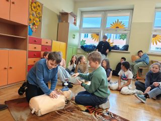 Wszyscy wiemy, że wypadki mogą zdarzyć się wszędzie: w domu, w szkole i na ulicy. Szybka reakcja świadków zdarzenia bardzo często decyduje o zdrowiu lub życiu poszkodowanego. Aby właściwie przygotować się do udzielania pierwszej pomocy, uczniowie klas Va i Vc zdobywali nowe umiejętności pod kierunkiem ratownika medycznego, pana Mariusza Bogusza. W części teoretycznej zajęć piątoklasiści przypomnieli sobie telefony alarmowe oraz zasady obowiązujące w miejscu wypadku. W części praktycznej nauczyli się układania poszkodowanego w bezpiecznej pozycji, prowadzili reanimację oraz bandażowali rany. Zajęcia cieszyły się dużym zainteresowaniem uczniów i według ich opinii były bardzo ciekawe oraz pożyteczne.