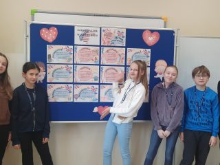 Z okazji walentynek odbyła się w naszej szkole akcja „Zakochaj się w angielskim”. Na korytarzu pojawiła się gazetka zachęcająca uczniów do nauki języka angielskiego i prezentująca korzyści wynikające ze znajomości tego języka. Uczniowie wzięli też udział w zabawie polegającej na odnajdywaniu i łączeniu w całość połówek serduszek ze znanymi z literatury i filmu słynnymi parami. Osoby, którym udało się znaleźć swoje pary otrzymały drobne walentynkowe upominki.