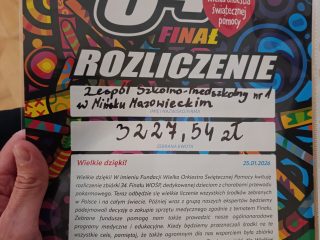 W naszej Szkole odbyła się zbiórka pieniędzy na rzecz 34. Finału Wielkiej Orkiestry Świątecznej Pomocy. Akcja została zorganizowana z ogromnym zaangażowaniem i spotkała się z bardzo pozytywnym odzewem ze strony całej społeczności szkolnej. W inicjatywie wzięli udział uczniowie, nauczyciele, pracownicy szkoły, rodzice, a także przedszkolaki oraz nauczyciele wychowania przedszkolnego.
